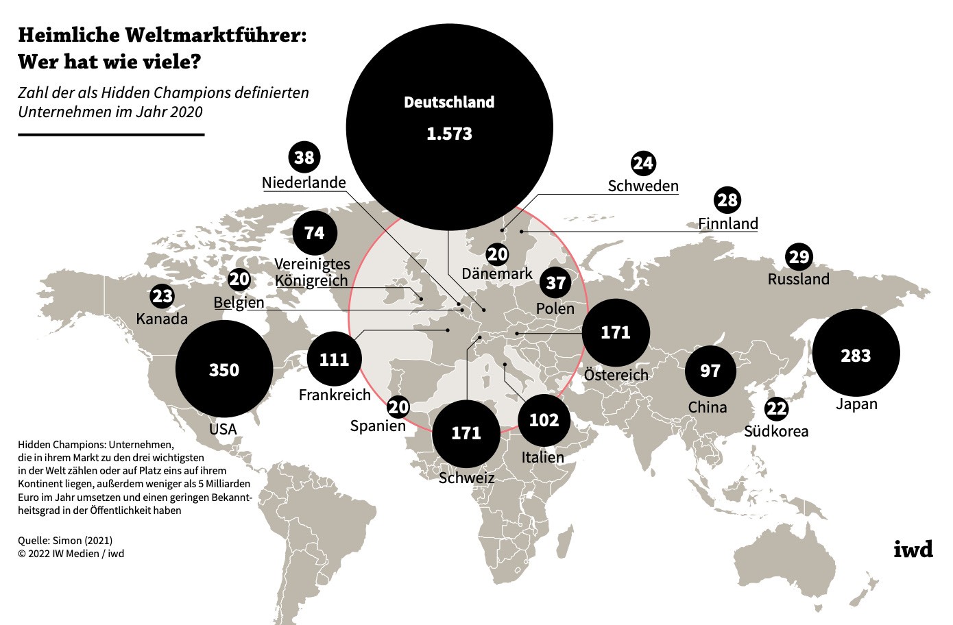 Deutschland stellt dabei rund 1.500 der weltweit 3.298 Hidden Champions.